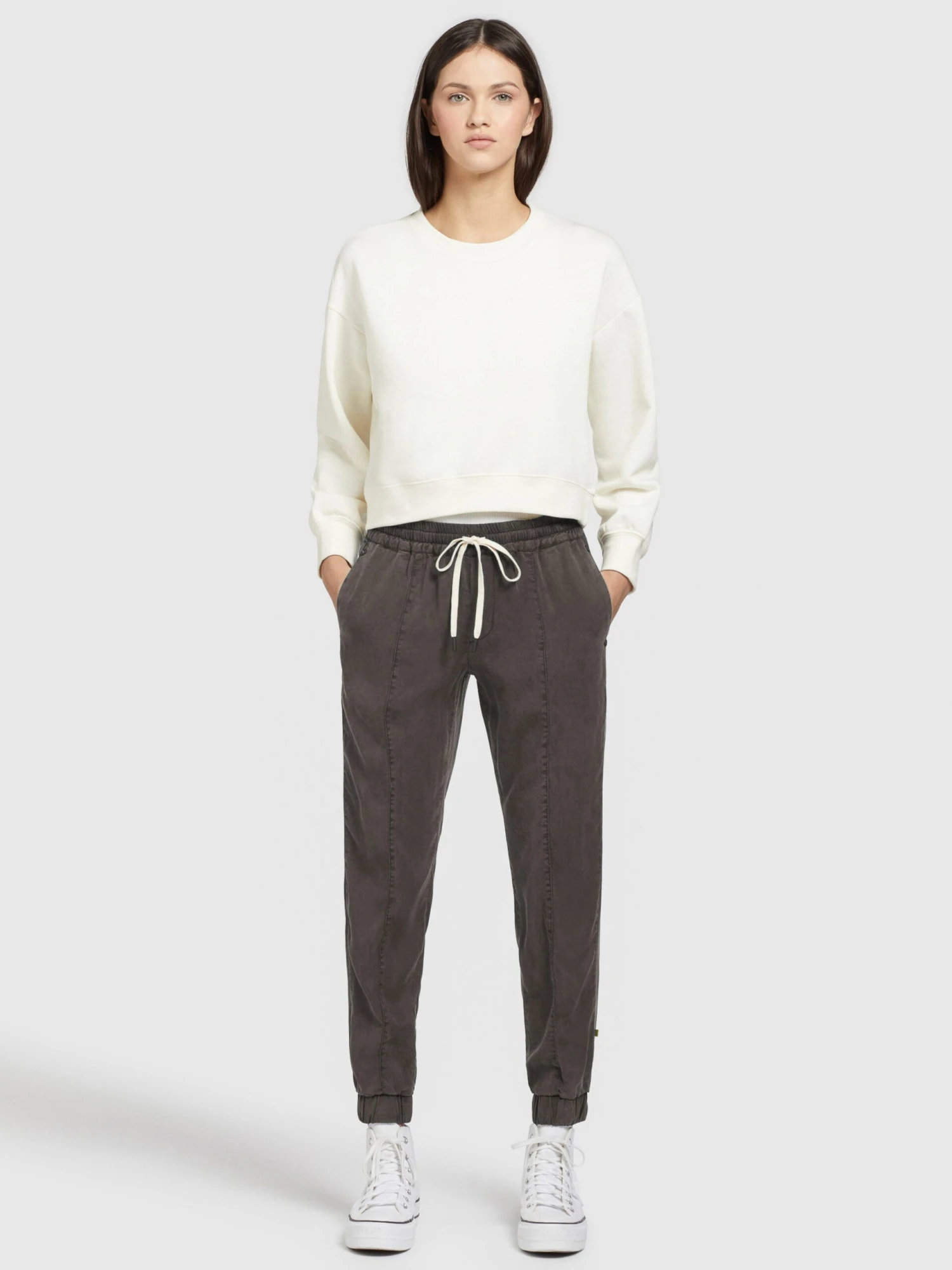 Khujo Pantalons Tapered Broek SANDI Dames Antraciet